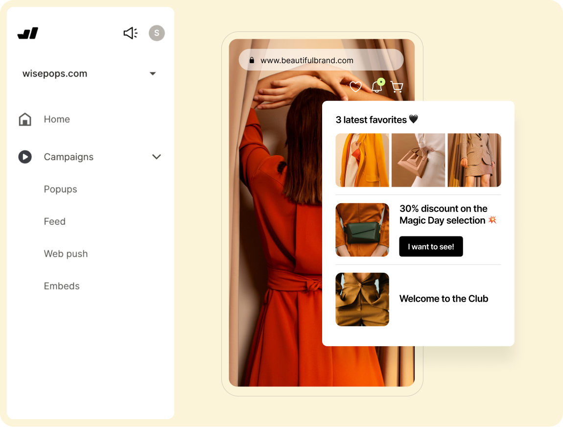 Wisepops supports every major onsite format — popups, embeds, bars, and feed — so you're not limited to a few ways of reaching visitors.